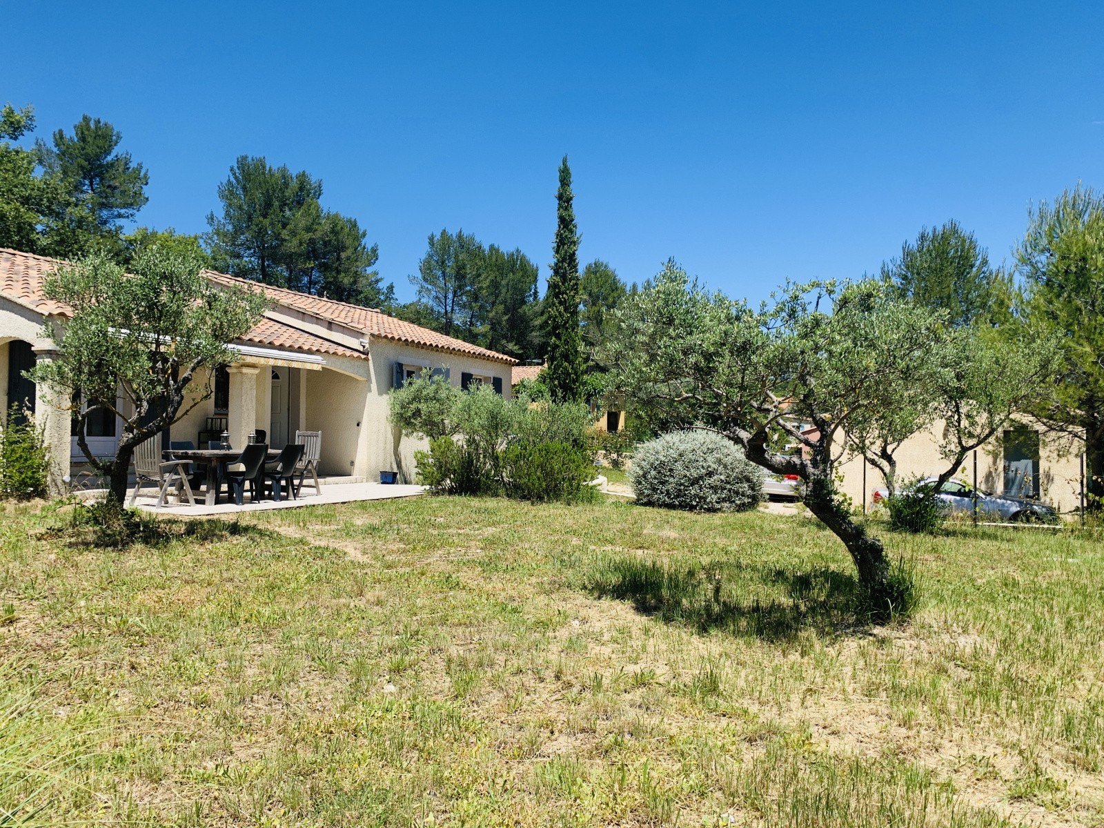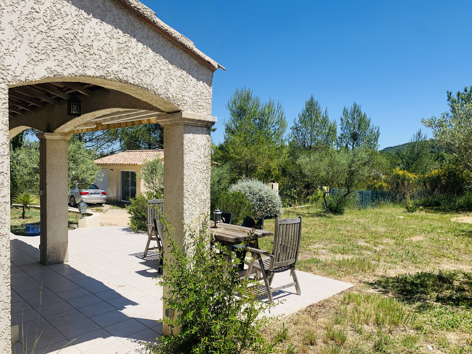 La villa T4 de plain pied se compose d'une entrée, un séjour composé d'un salon avec cheminée polyflammes, et d'une climatisation réversible, d'une salle à manger, d'un espace cuisine ouvert, une buanderie/cellier, 3 chambres, un dressing, une salle de bains et toilettes indépendants. Un double garage. Des terrasses. Et jardin plat autour de 988 m2.