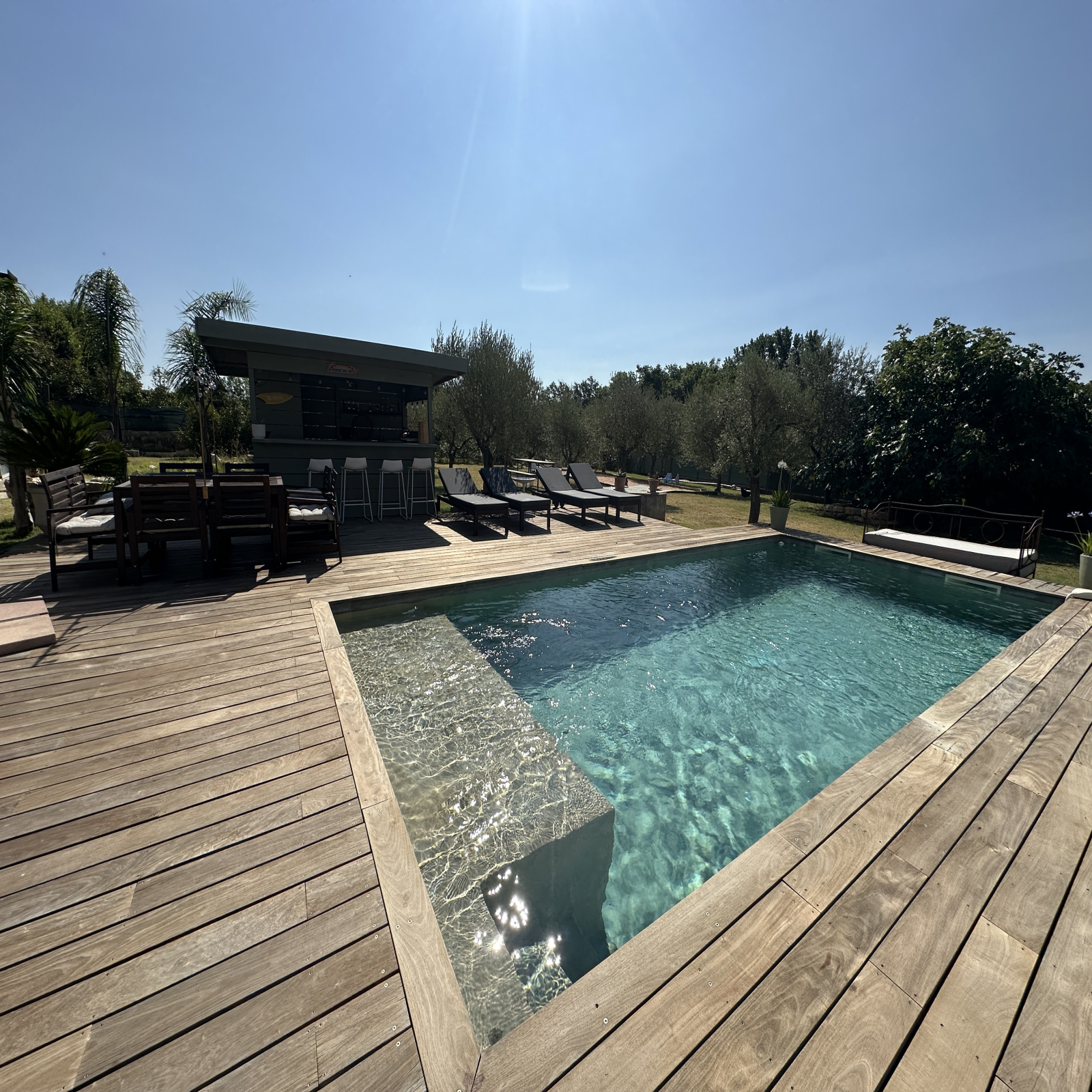 Piscine 8x4 au sel avec cuisine d’été équipée