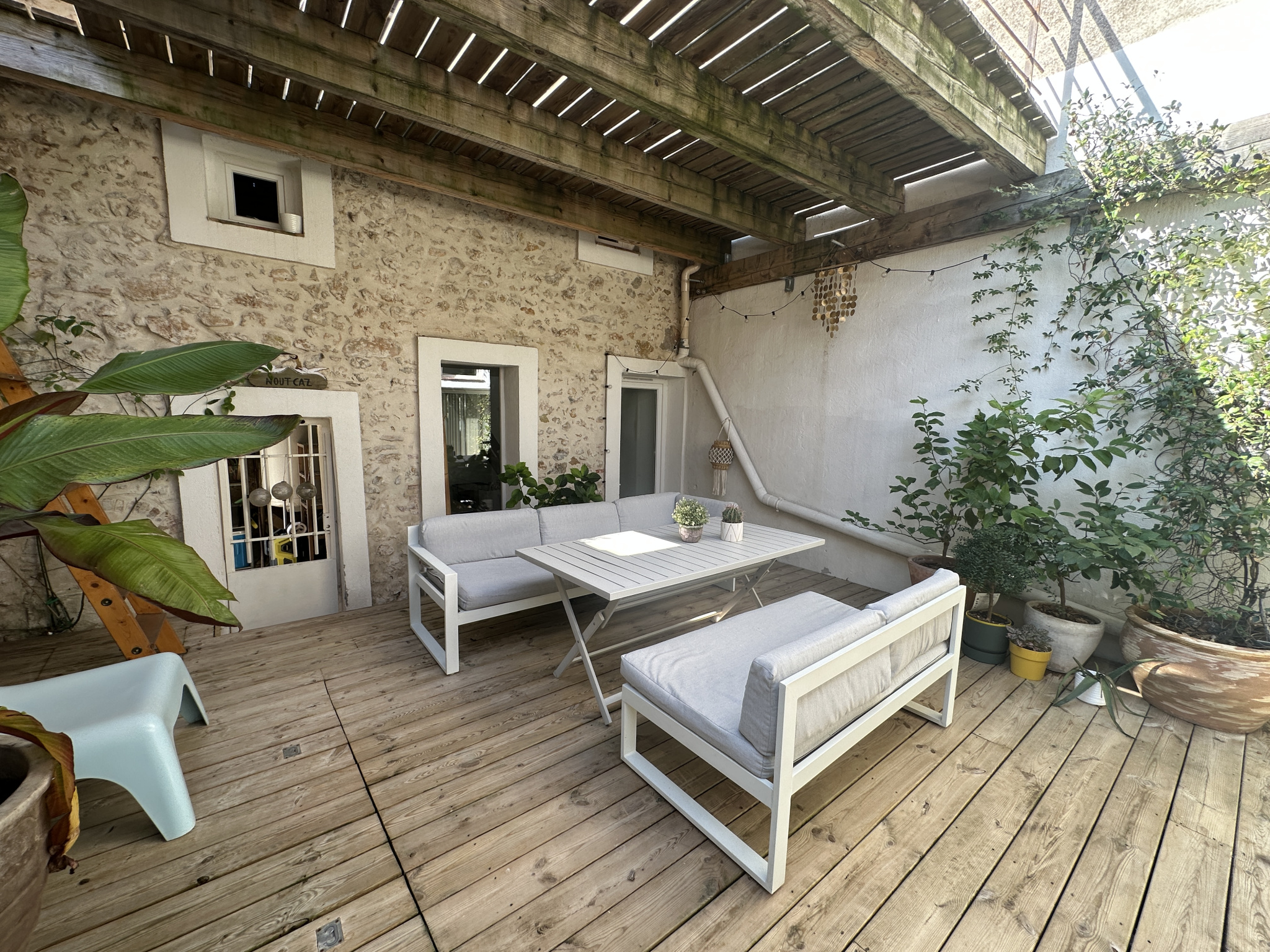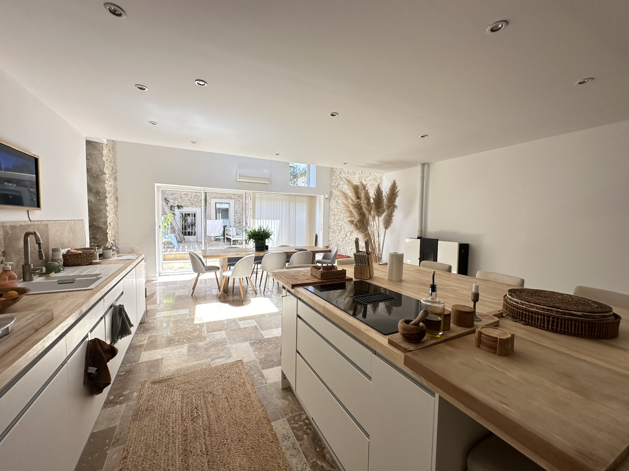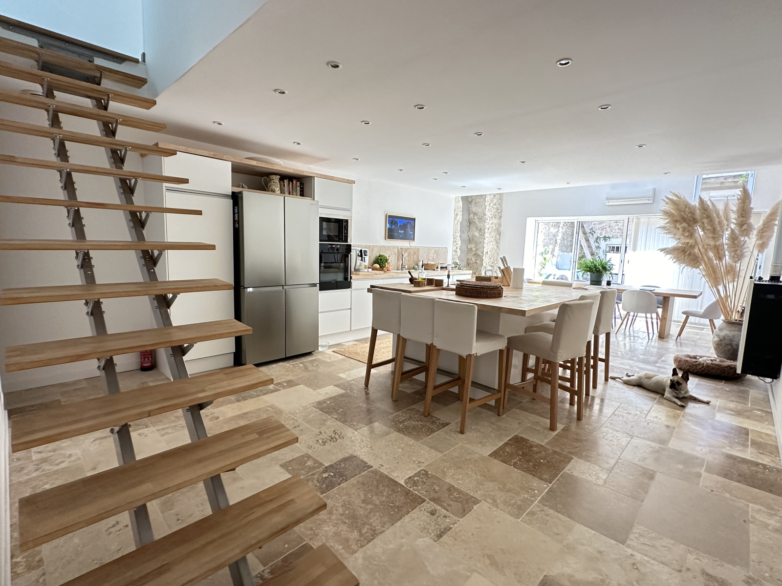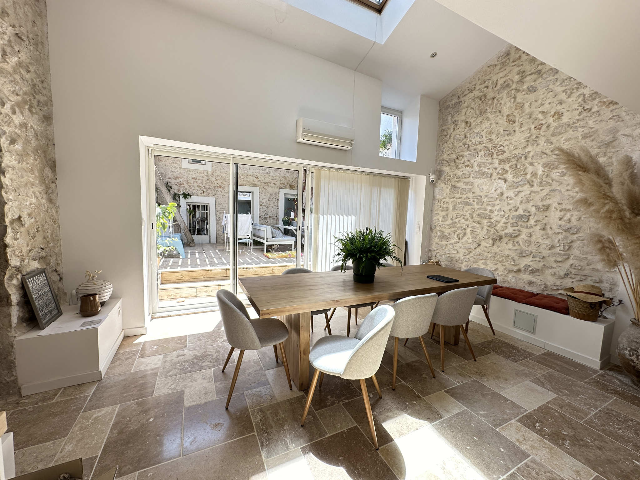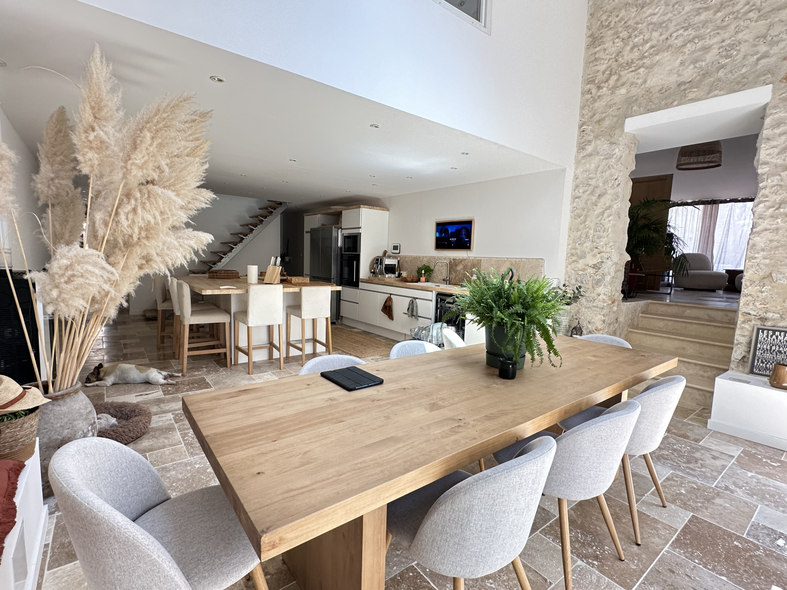 Ensemble immobilier composé d’une maison en pierre rénovée, d’une villa indépendante ( vente en viager semi-libre), d’un local commercial, avec jardin, piscine, garage et dépendances.