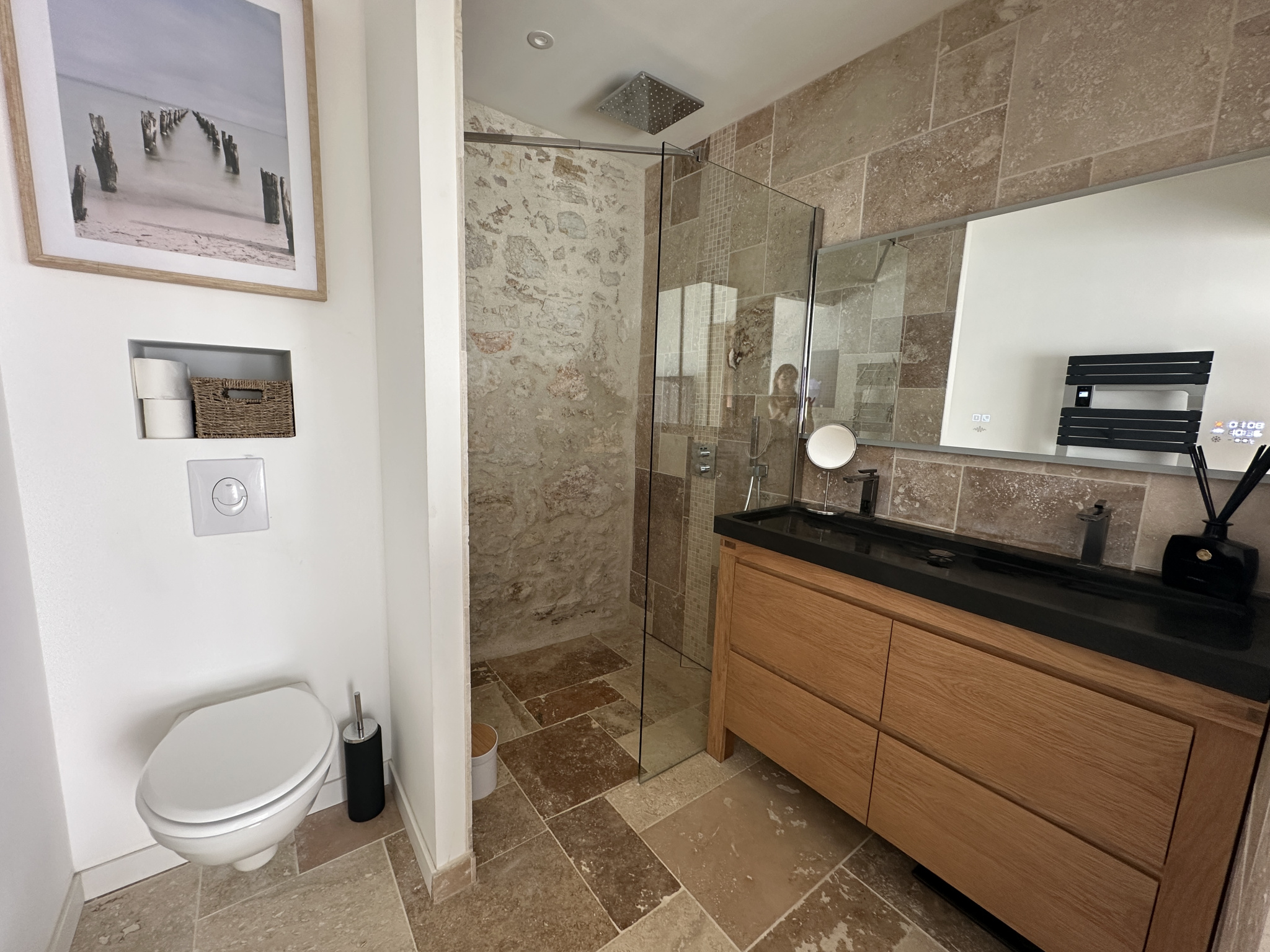 La propriété principale se compose d’une maison en pierre de type 5, entièrement rénovée avec des prestations actuelles et soignées. Elle offre notamment trois suites, un espace de vie confortable et des équipements de qualité.