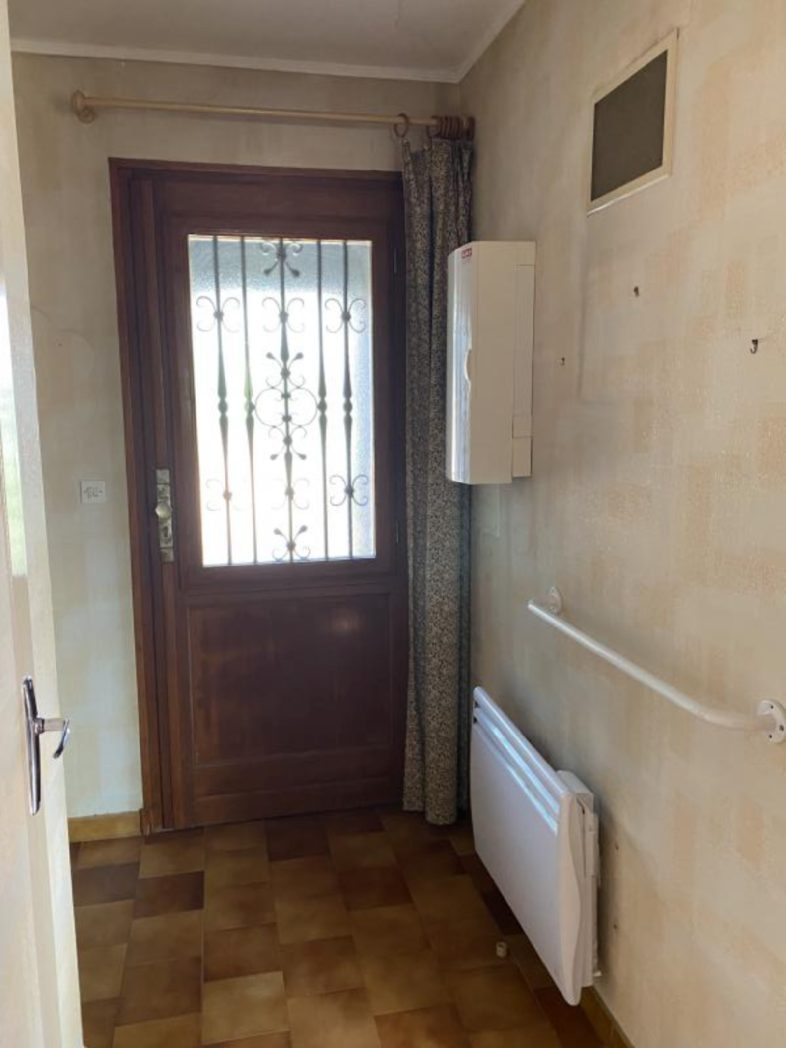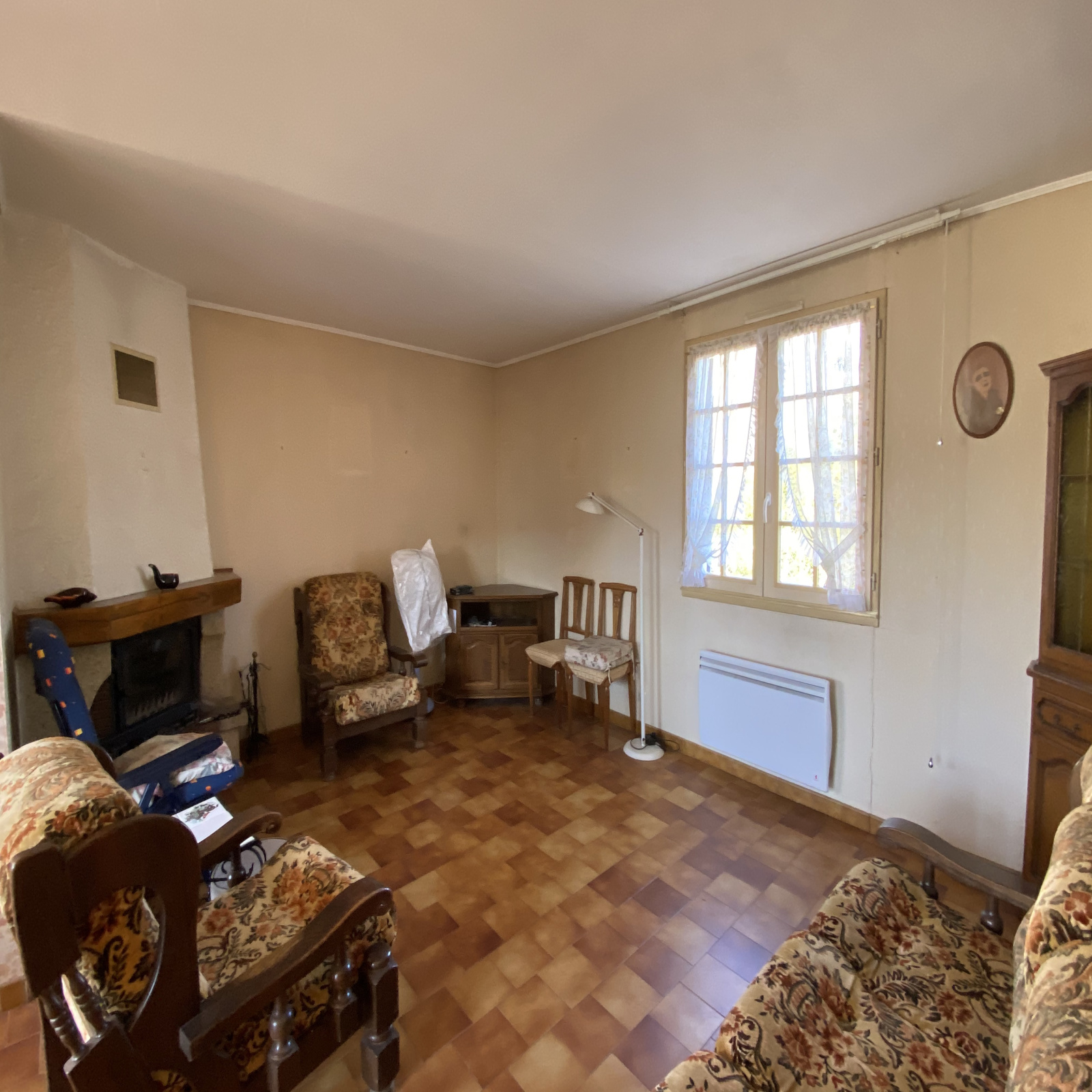 La maison se compose : d'une entrée avec placards, un cellier avec placards, un séjour/ salle à manger traversant avec cheminée insert, une cuisine avec placards, une buanderie, une chambre, un bureau et une salle de bains, wc. Garage attenant et communicant avec atelier. Le terrain entièrement clos plat de 451 m2, arboré et paysagé, exposé plein sud. Taxe foncière 847,00 €. Ses atouts : Plain pied - garage et atelier - quartier calme - 600 mètres du village - jardin clos sud.