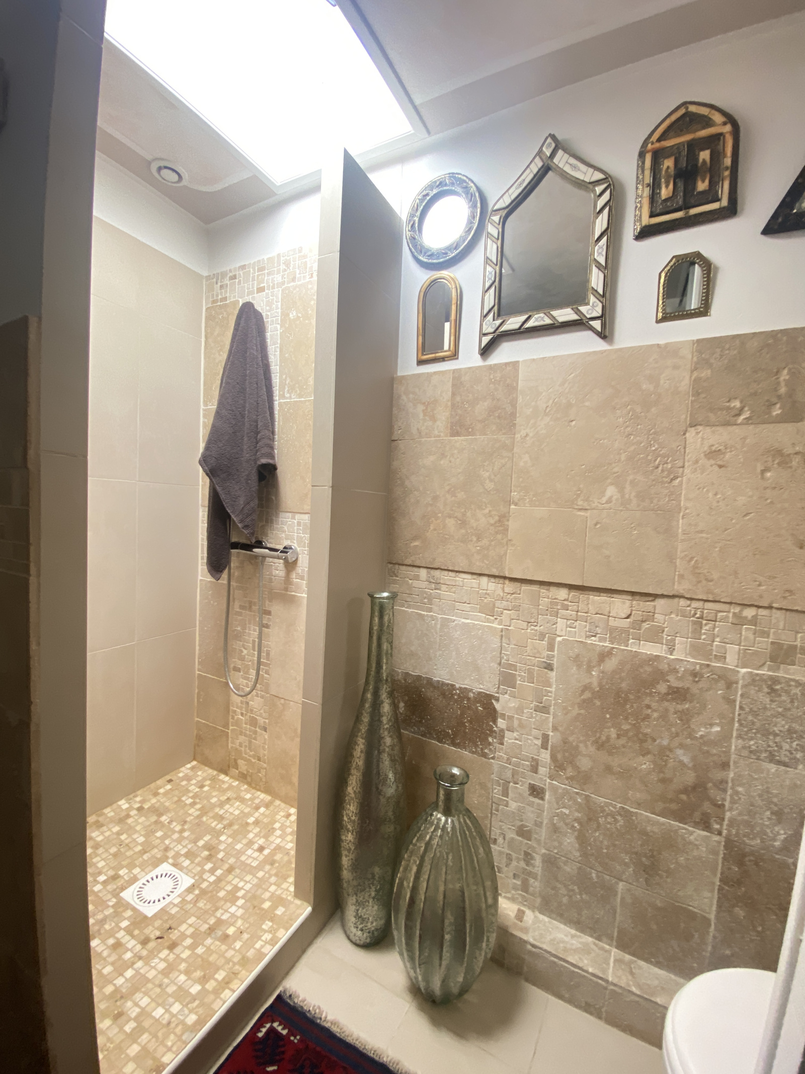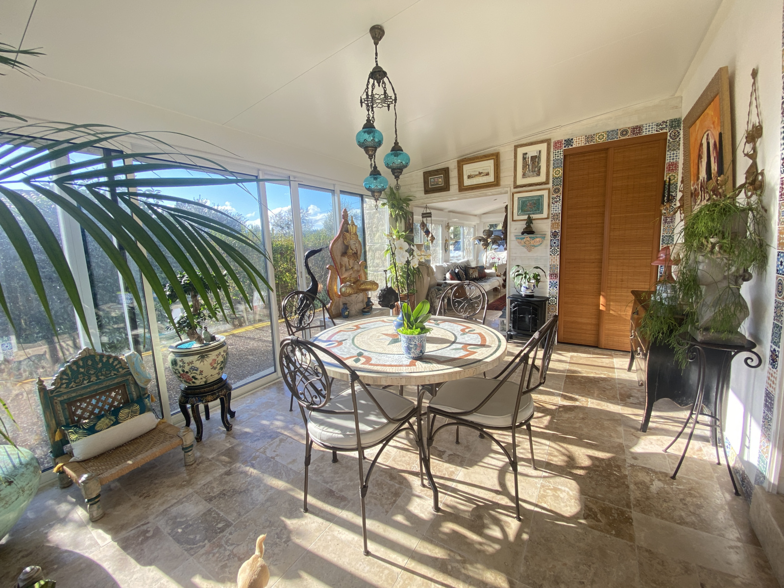 Ses prestations : Fosse septique, double vitrage aluminium, volets roulants aluminium automatique, climatisation réversible, Travertin intérieur et exterieur, équipement cuisine et dressing Mobalpa, eau de ville, vue dégagée.