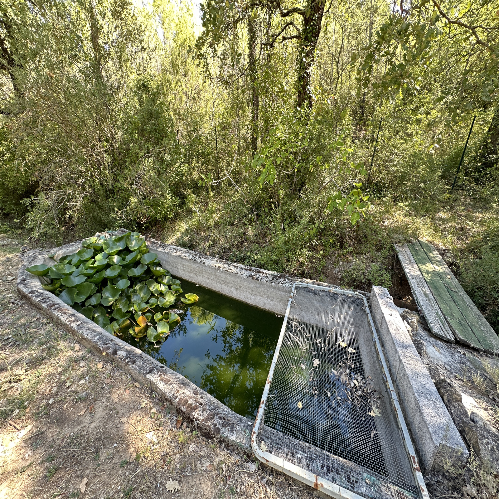 Le terrain de 2300 m2 plat, cloturé. Eau uniquement par forage. Fosse septique non conforme. Travaux à prévoir. Mandat 2393 - Les Sélections de Marie. 04.98.15.40.52.