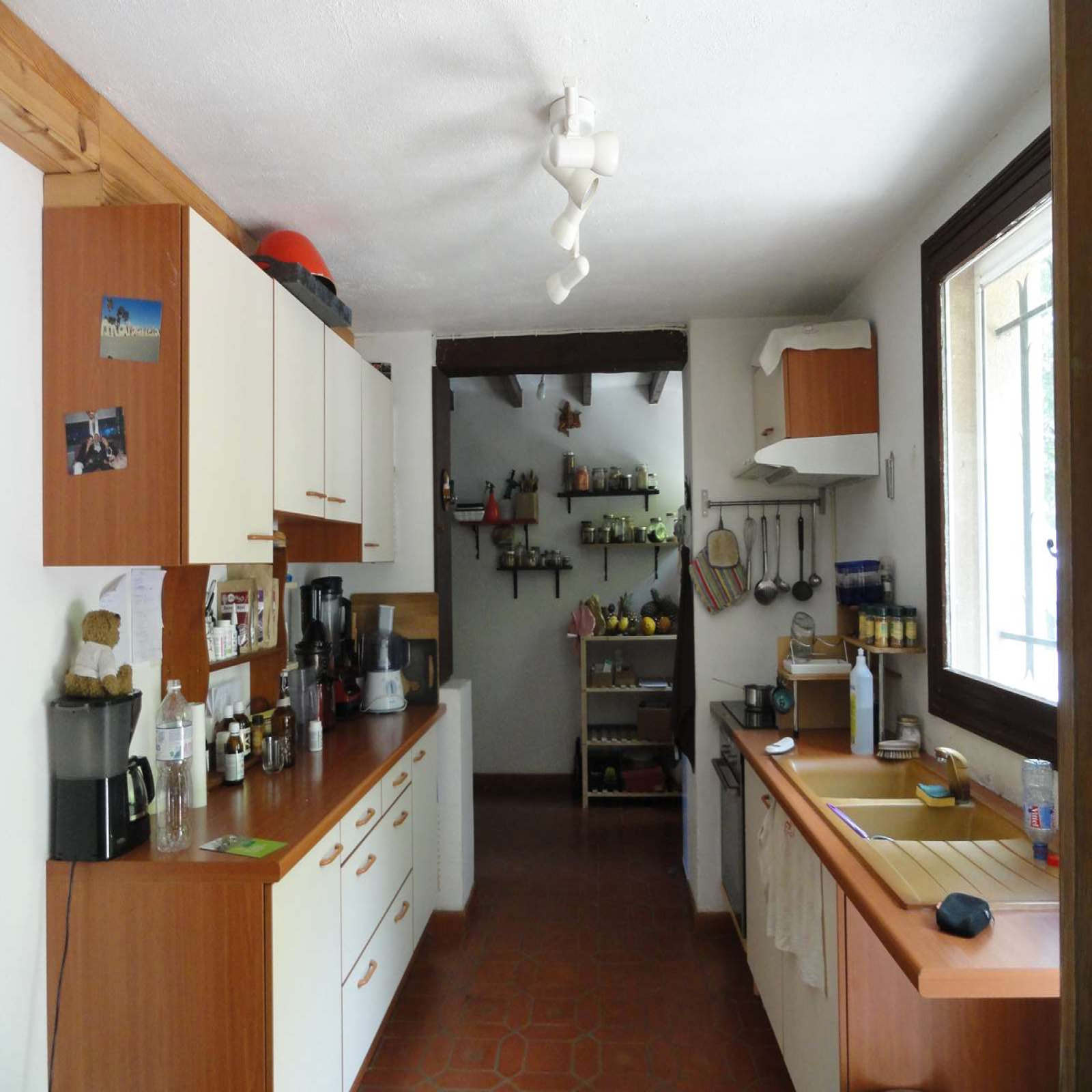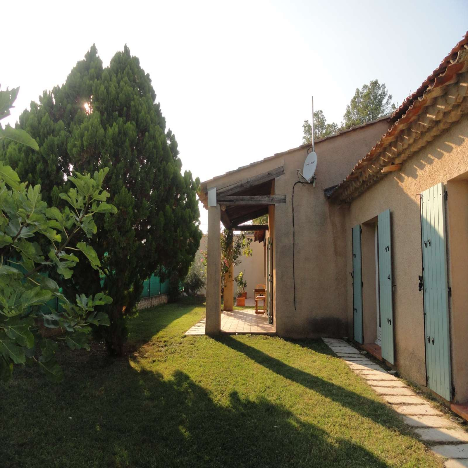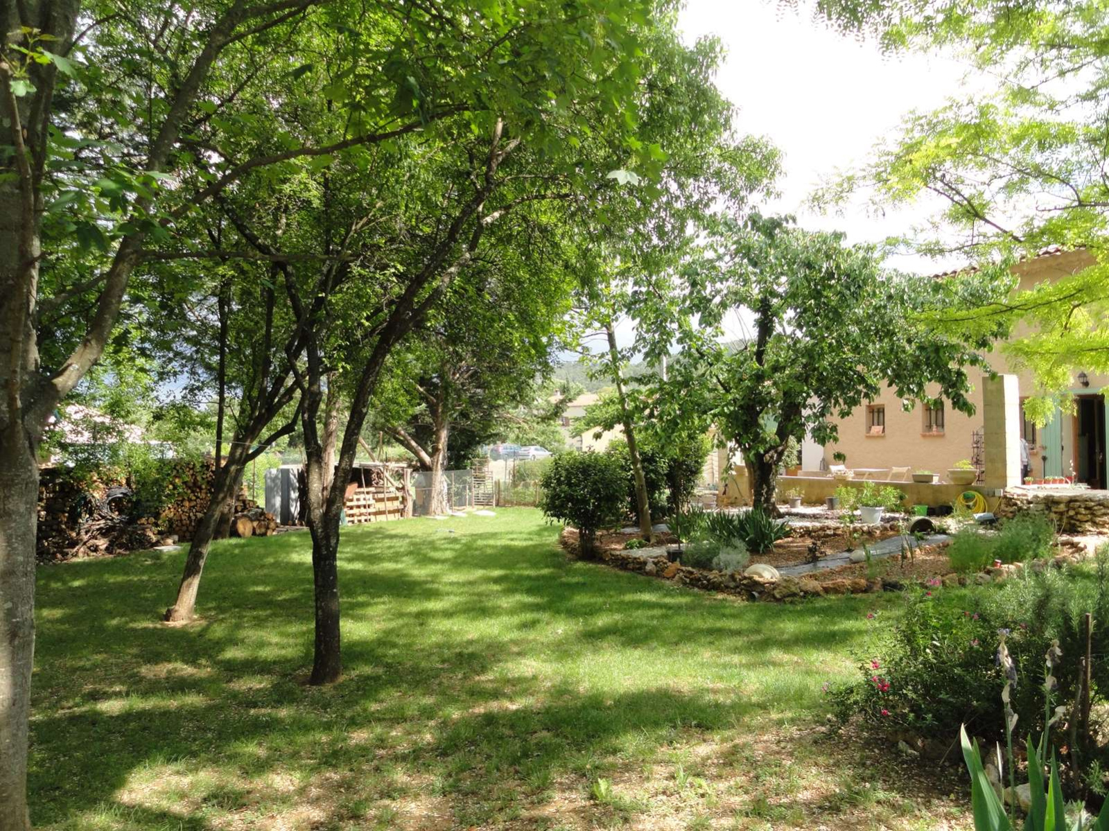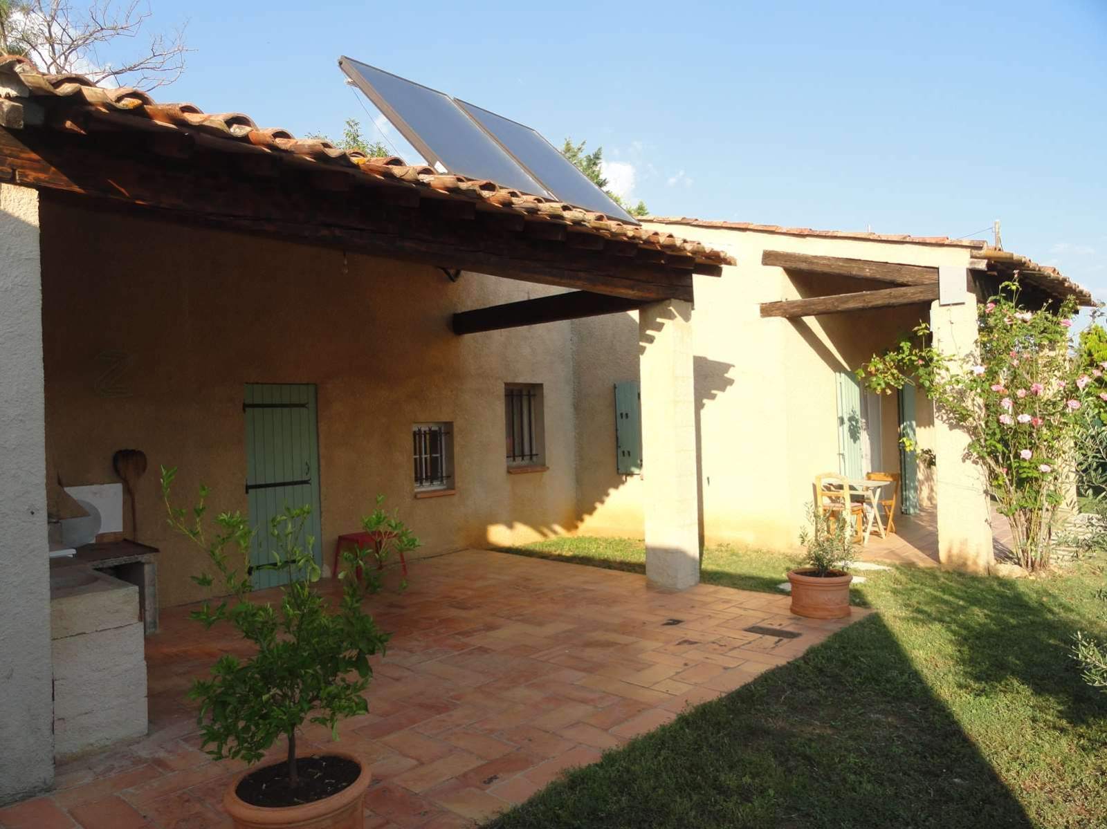 A l'étage un espace bureau/mezzanine, une chambre avec sa terrasse tropezienne. Le terrain entièrement clos, paysagé et arboré d'essences locales bénéficie d'un assainissement autonome, et de l'eau de ville. Un garage attenant de plus de 30 m2. Des terrasses. Un chalet. Chauffe eau et chauffage solaires.
