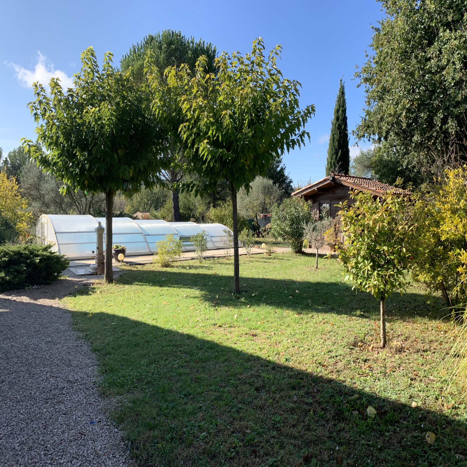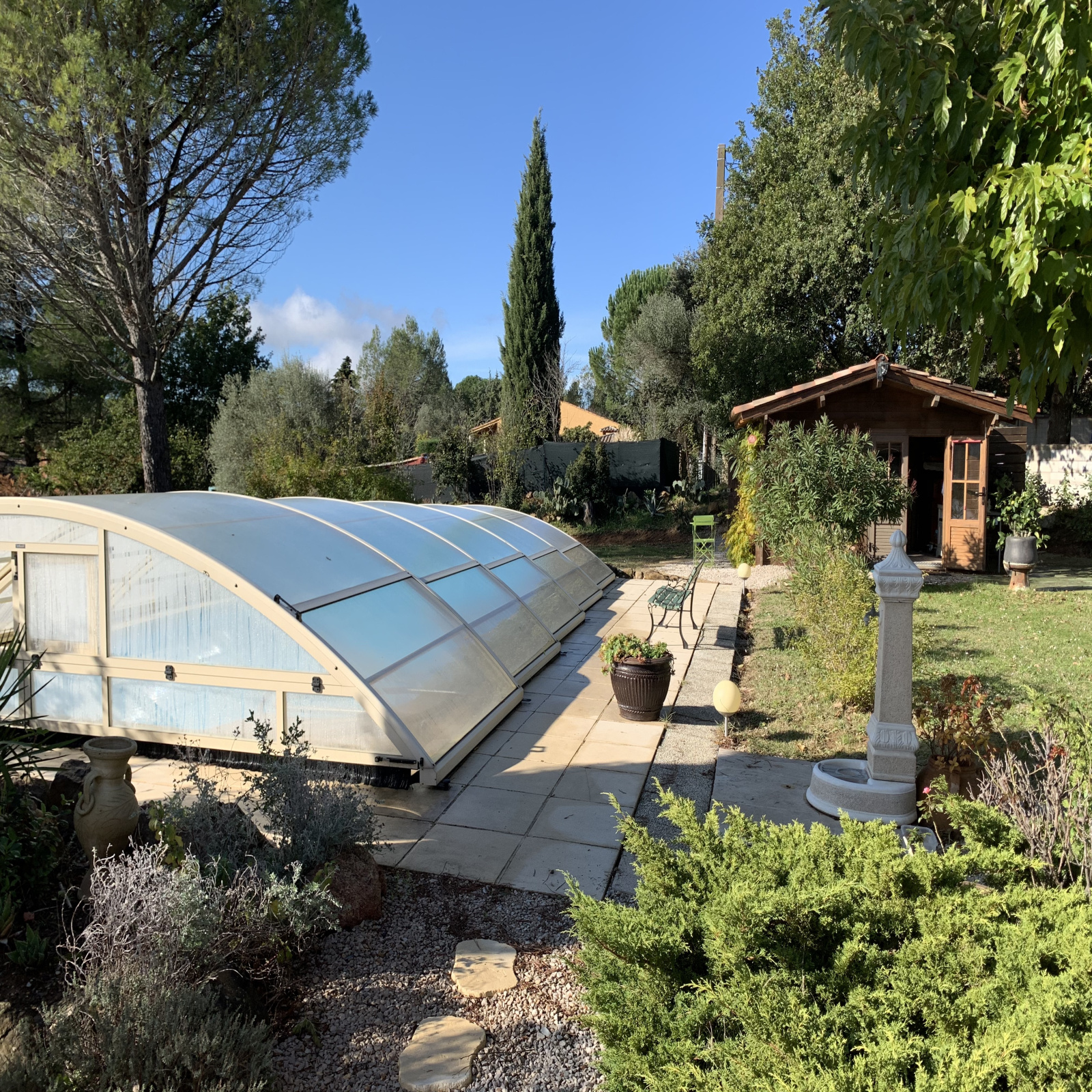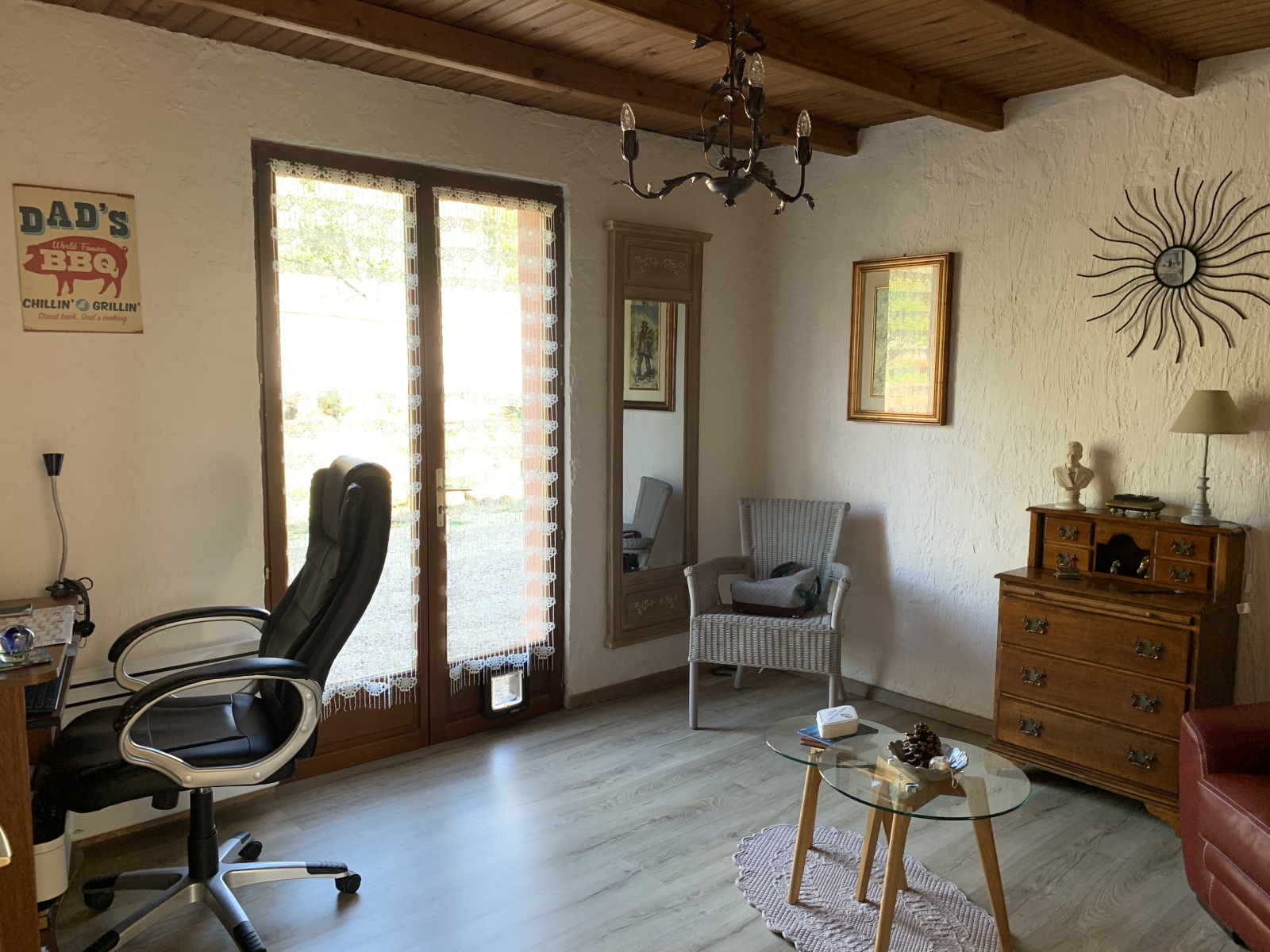 La maison de plain pied comprend une entrée, des toilettes indépendants, une suite parentale avec salle d'eau, une cuisine parfaitement équipée et meublée avec son coin repas, une arrière cuisine de type buanderie, un salon/ salle à manger très lumineux, 2 chambres avec salle d'eau + wc communicante. Terasse sud carrelée, un espace piscine avec dôme, un chalet, abri-voiture, sur un terrain clos paysagé et arboré de plus de 2700m2.