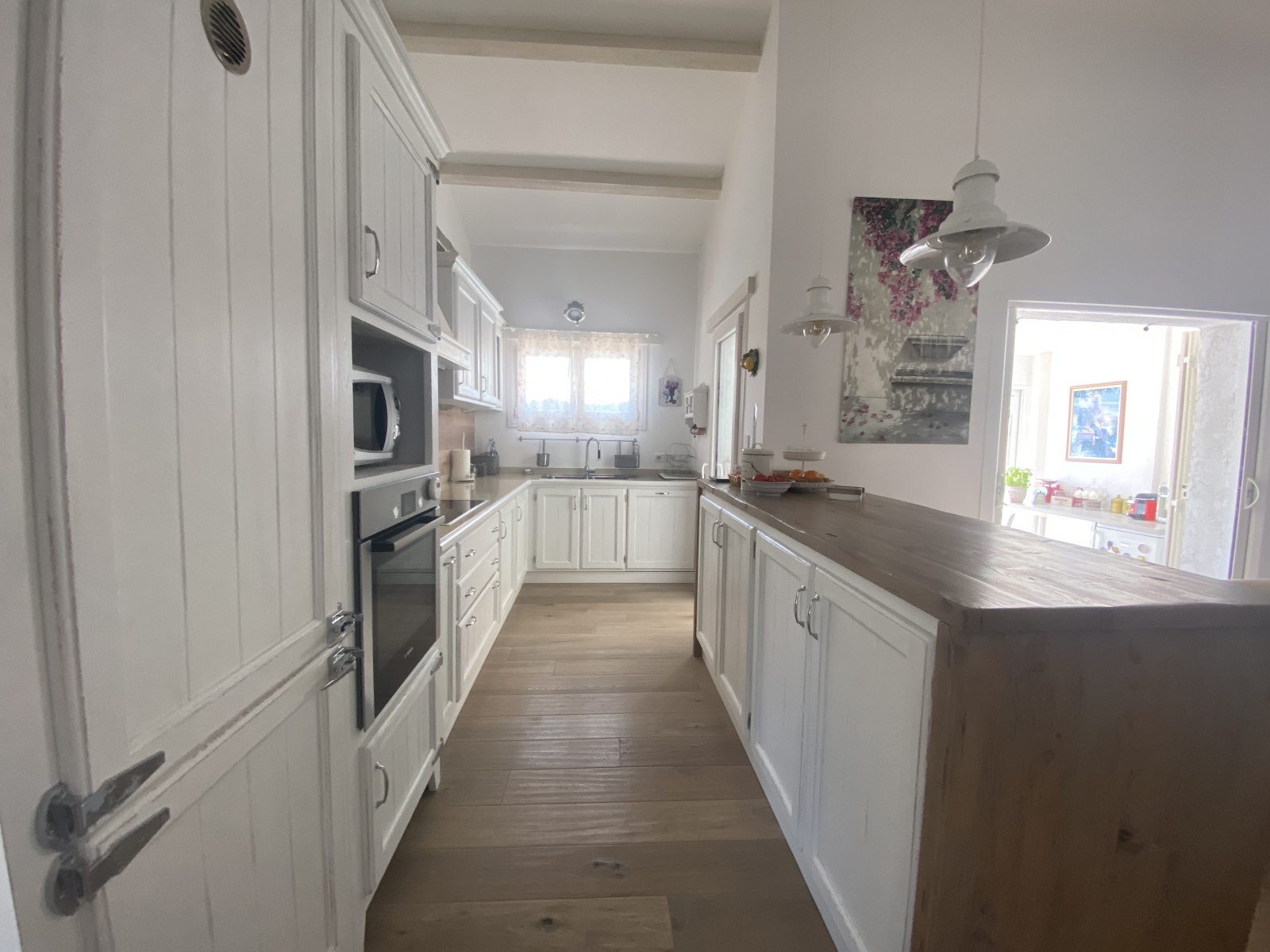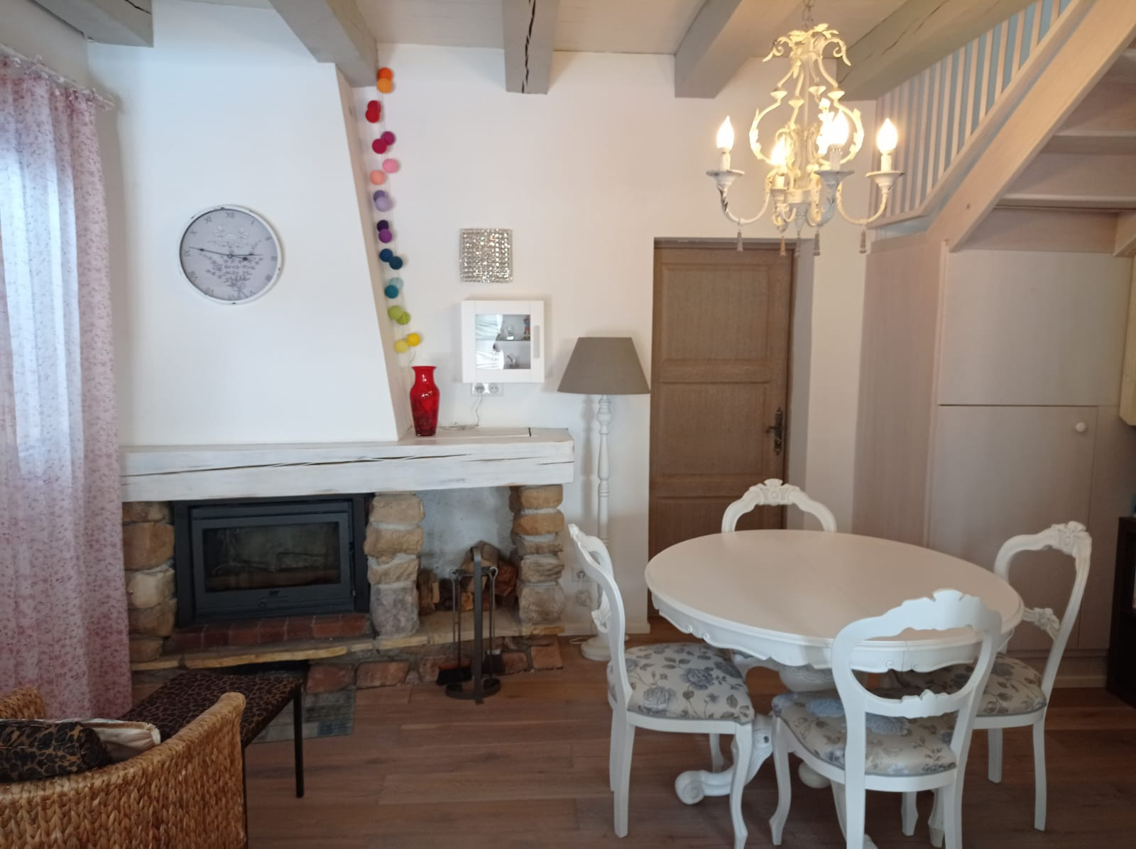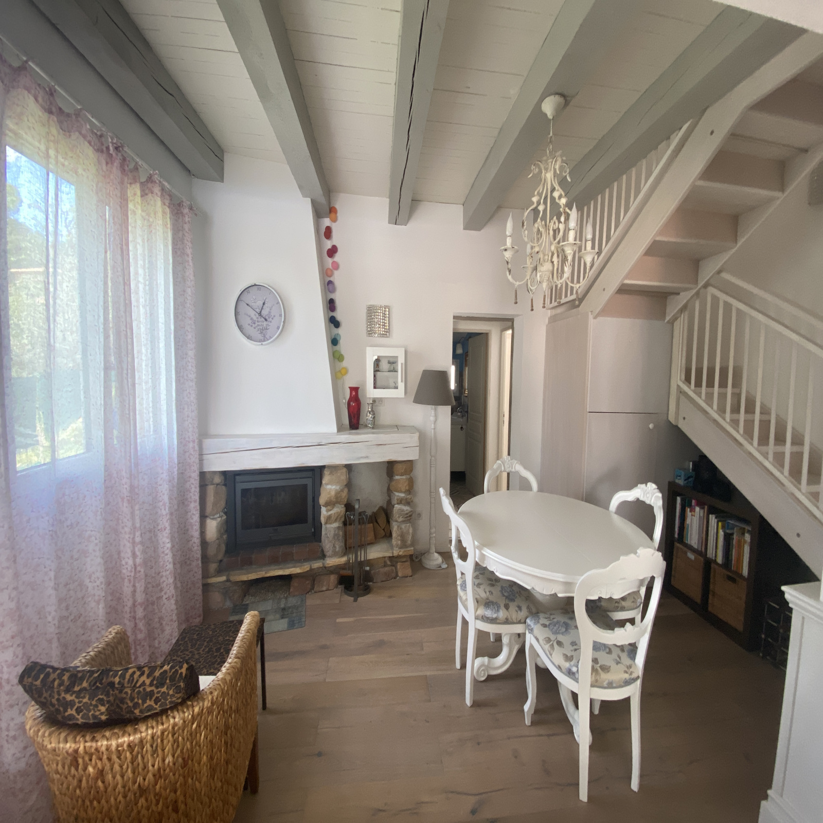 La maison se compose d'une entrée ave placards, une cuisine meublée et équipée ouverte sur le salon, une salle à manger avec cheminée insert, une mezzanine, 2 chambres avec mezzanine, une salle d'eau avec wc ( travertin). Une piscine 12X6 et sa plage autour. Filtration au sel. Pool house. Un atelier. Un local technique. Un abri voiture.
