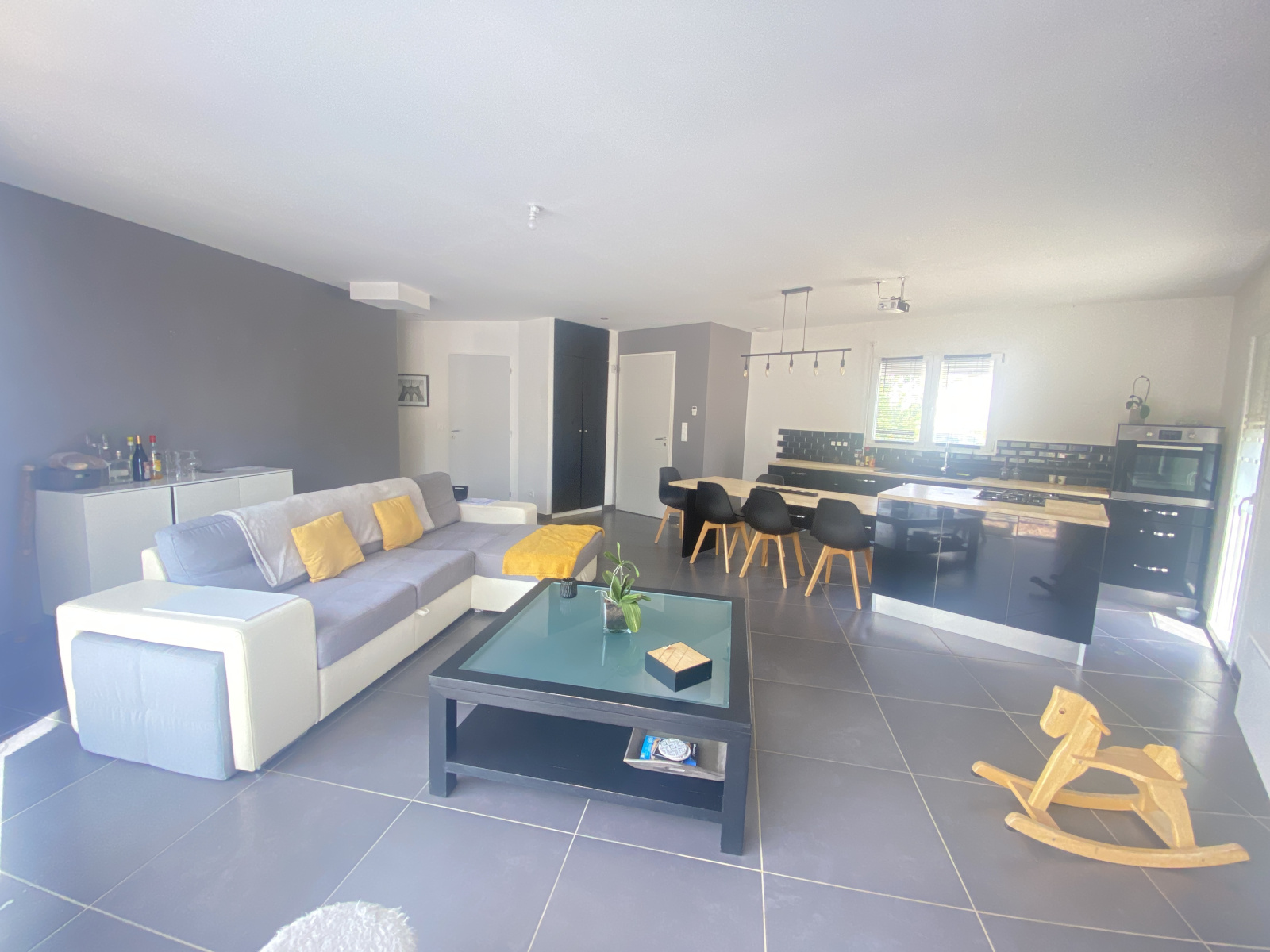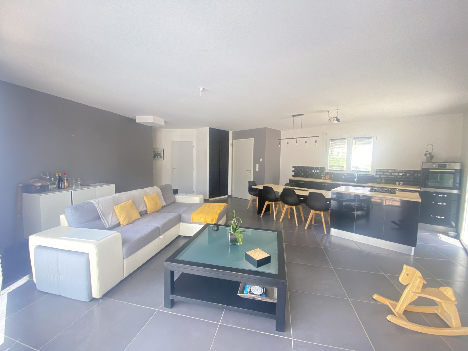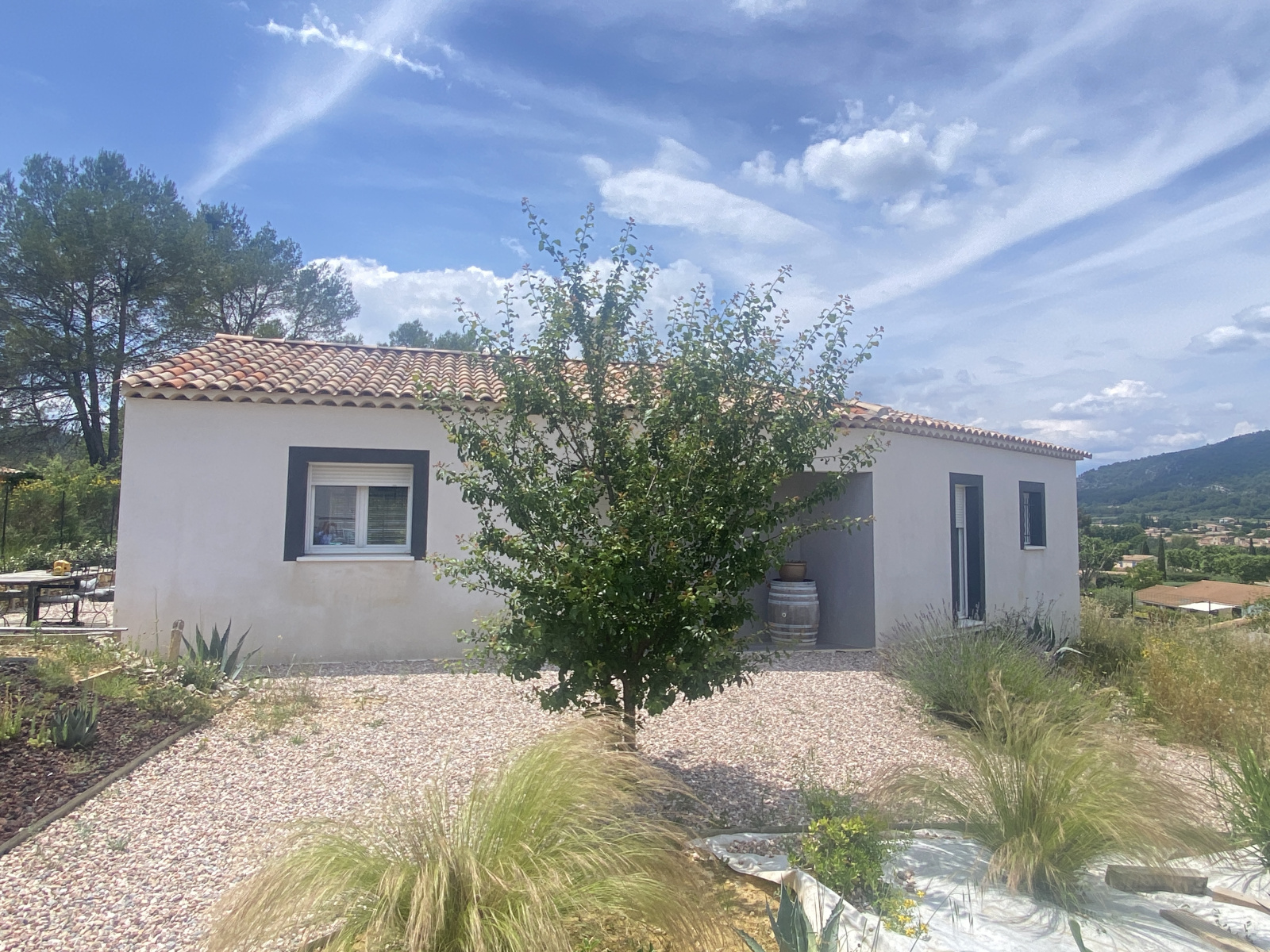 Exclusivité - Le Val - Quarter recherché à proximité du centre village - Villa réçente de type 4 de plain-pied se composant d'une entrée avec placards, un espace de vie composé d'une cuisine meublée et équipée avec un îlot + coin repas, un cellier, un salon, un couloir desservant 3 chambres dont une avec son dressing, une salle de bains et wc indépendant. Terrain clos et paysagé de 995 m2 -