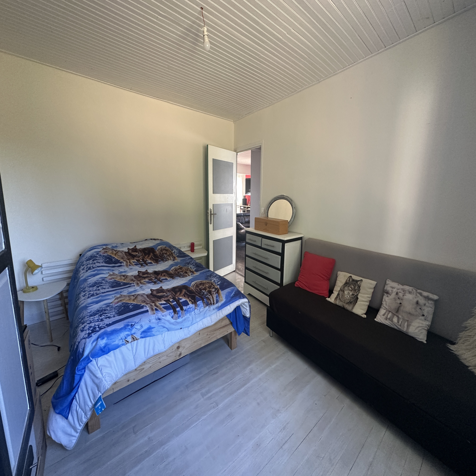 Une entrée, un séjour, trois chambres, une salle d'eau et wc indépendant. Une terrasse sud. Un garage et terrain autour de 3500 m2 clos et arboré.