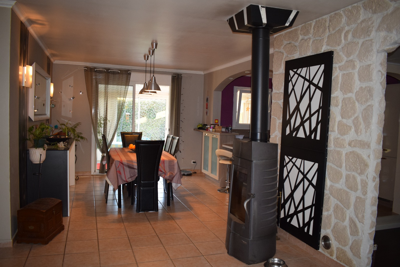 Elle se décompose comme suit : une entrée avec placards, une pièce de vie avec salon, salle à manger, poêle à bois, une cuisine ouverte entièrement équipée, un espace TV, une véranda, 3 chambres, une salle d'eau et wc indépendant avec rince main. Un appartement indépendant avec une salle d'eau avec wc. Un grand garage carrelé. Terrain autour parfaitement entretenu. Ses atouts : PISCINE - Chauffe eau thermodynamique - Panneaux photovoltaïques avec un revenu de 2100 €/an environ, adoucisseur d'eau autonome, forage, volets roulants auto.