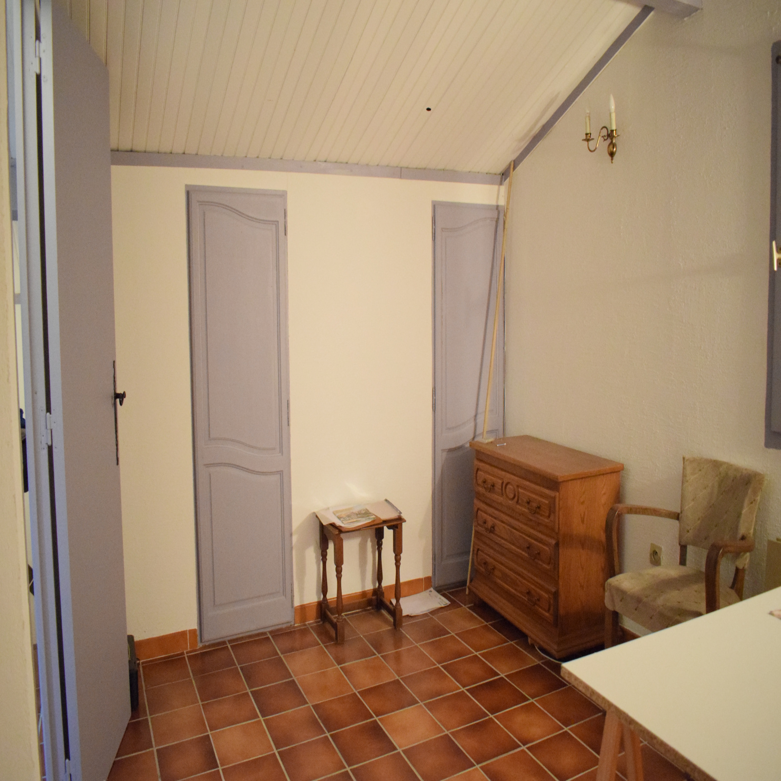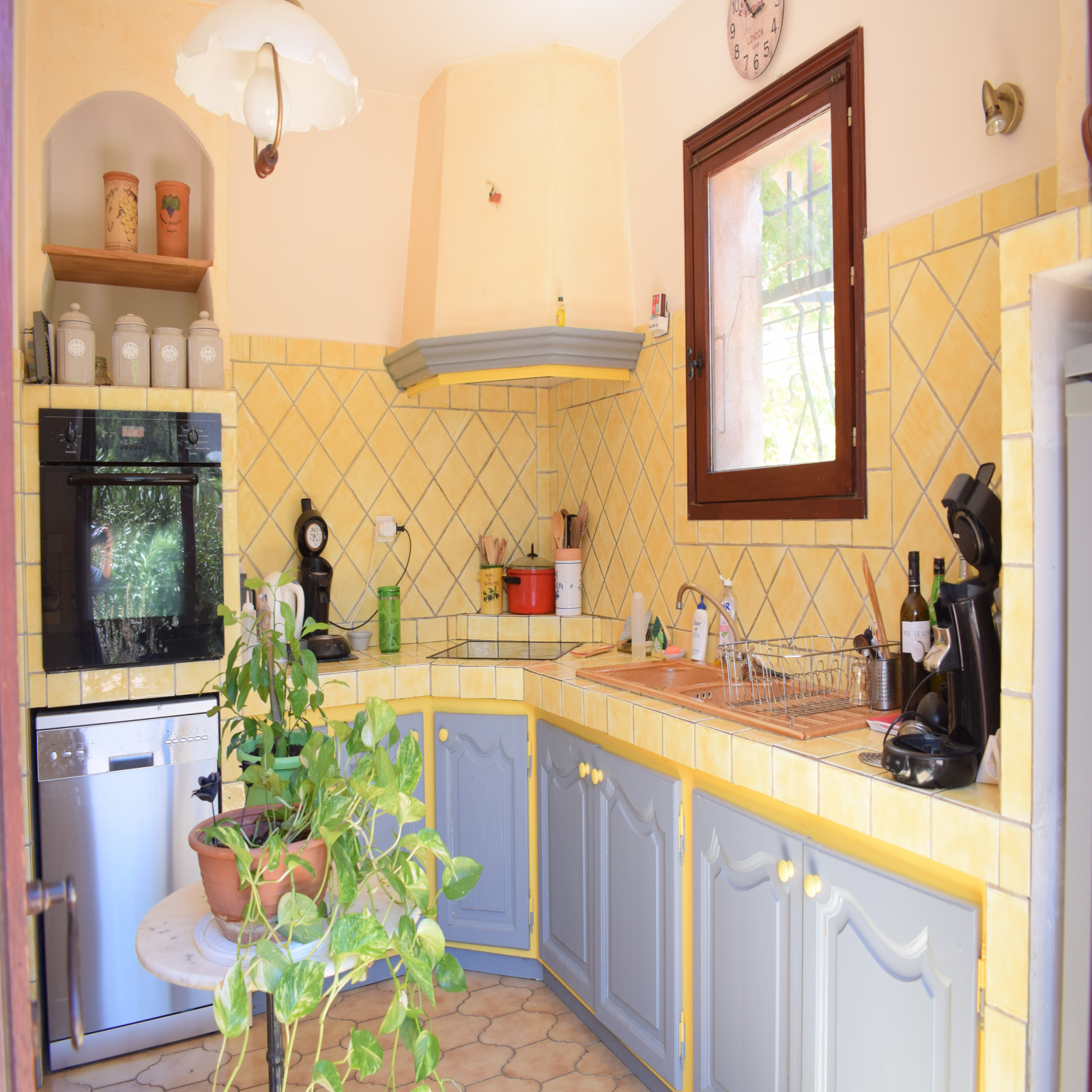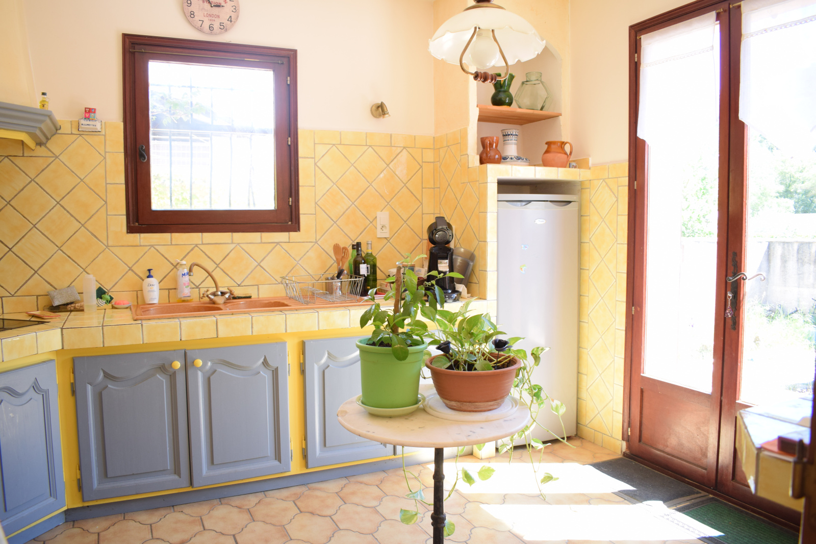 meublée et équipée lave vaisselle plaque vitrocéramique 4 feux hotte four et réfrigérateur coin repas et accès terrasse sud carrelée