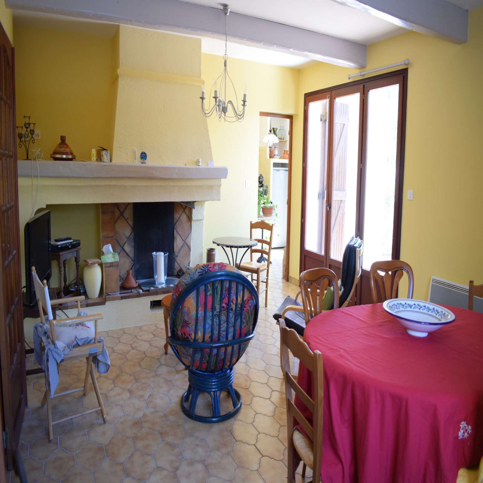 La maison se compose d'une entrée, toilettes indépendants, un salon / salle à manger avec cheminée ouverte, une cuisine équipée et meublée avec coin repas et accès terrasse, 2 chambres avec placards, une salle d'eau avec douche à l'italienne et placards;