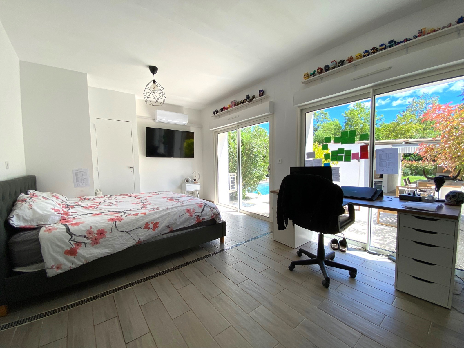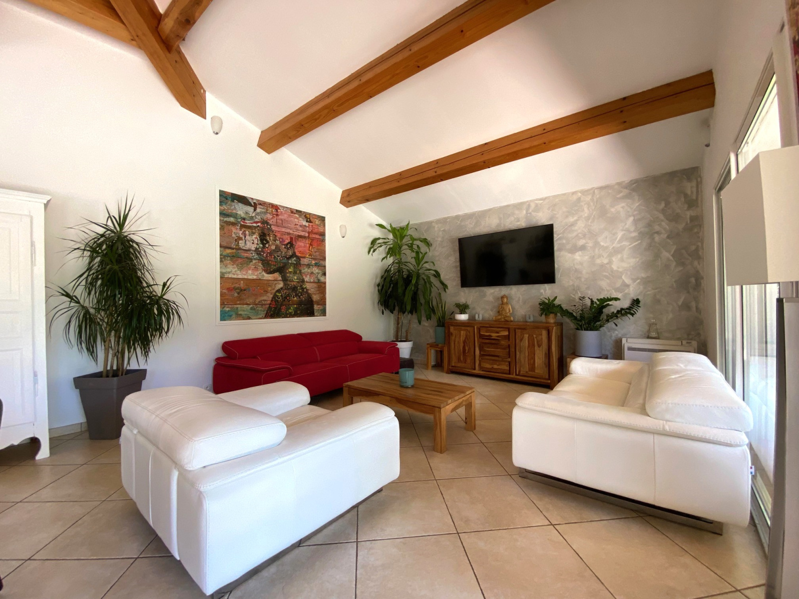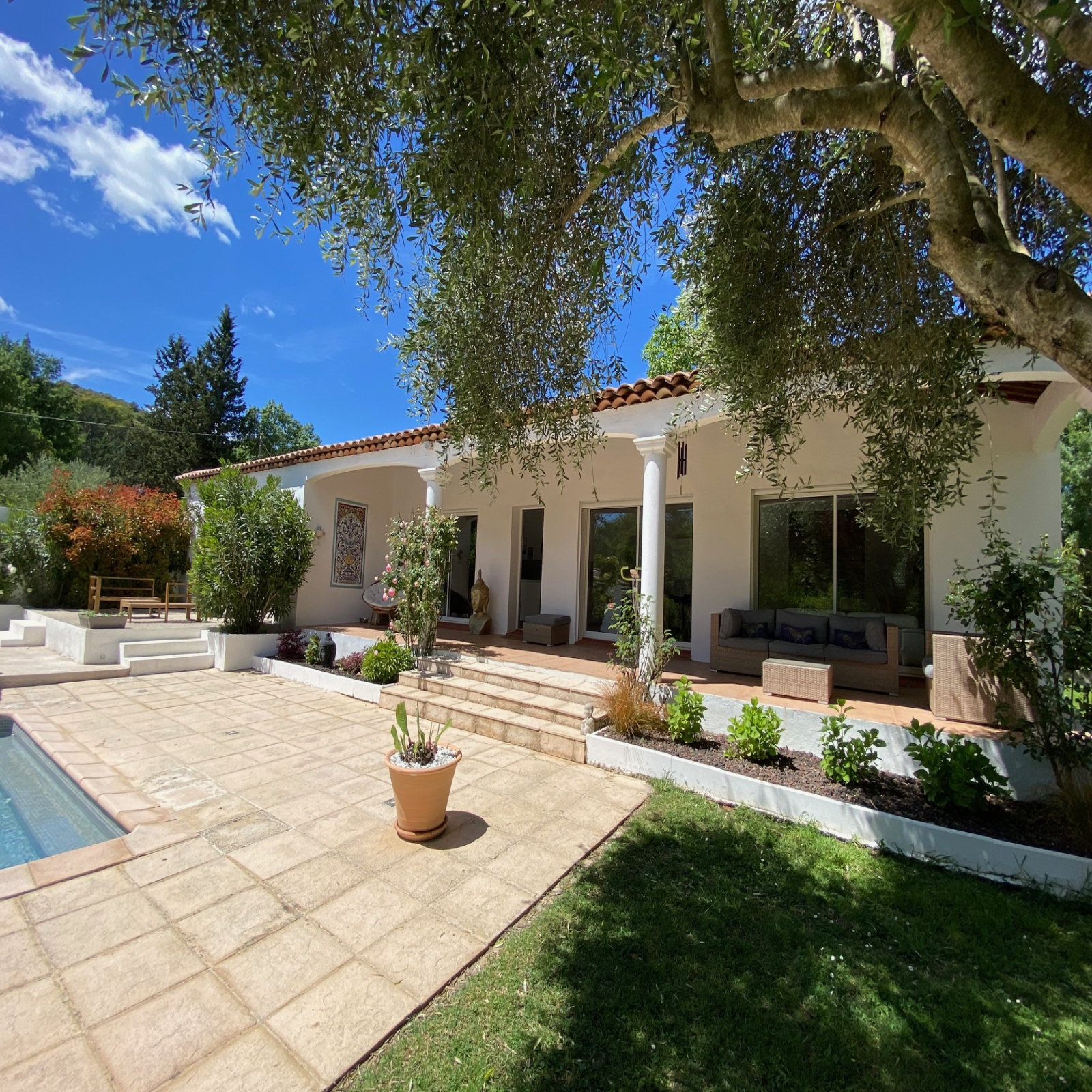 Cette élégante propriété séduit par ses volumes intérieurs, son environnement et ses équipements extérieurs. Beau volume pour le séjour avec cuisine équipée ouverte orant une très belle charpente apparente et une uminosité grâce aux larges baies vitrées s'ouvrant sur la terrasse couverte, le jardin et l'espace piscine. Grande chambre équipée d'un dressing, salle de bain avec bain à balnéo et douche, deuxième chambre, cellier / buanderie. Bien séparé de l'espace de vie, deux chambres dont une chambre double, une salle d'eau et des toilettes. Un confortable espace ...