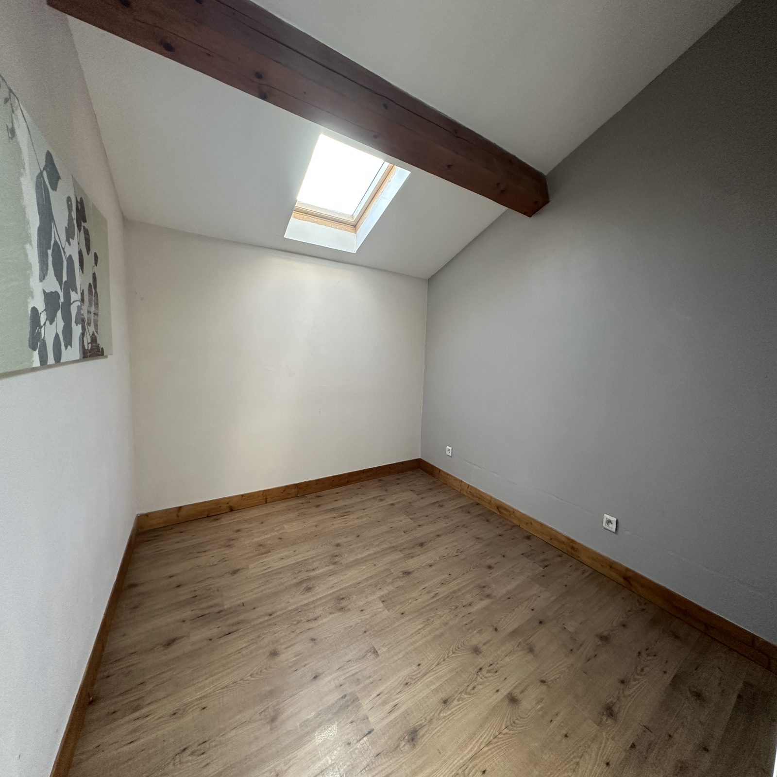 - À l'étage : Une chambre mansardée avec dressing et salle d'eau avec wc.