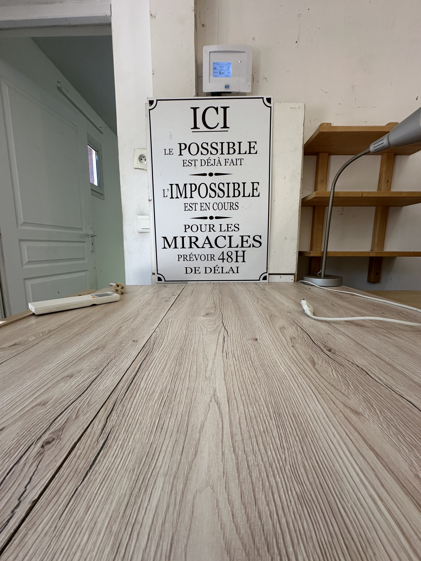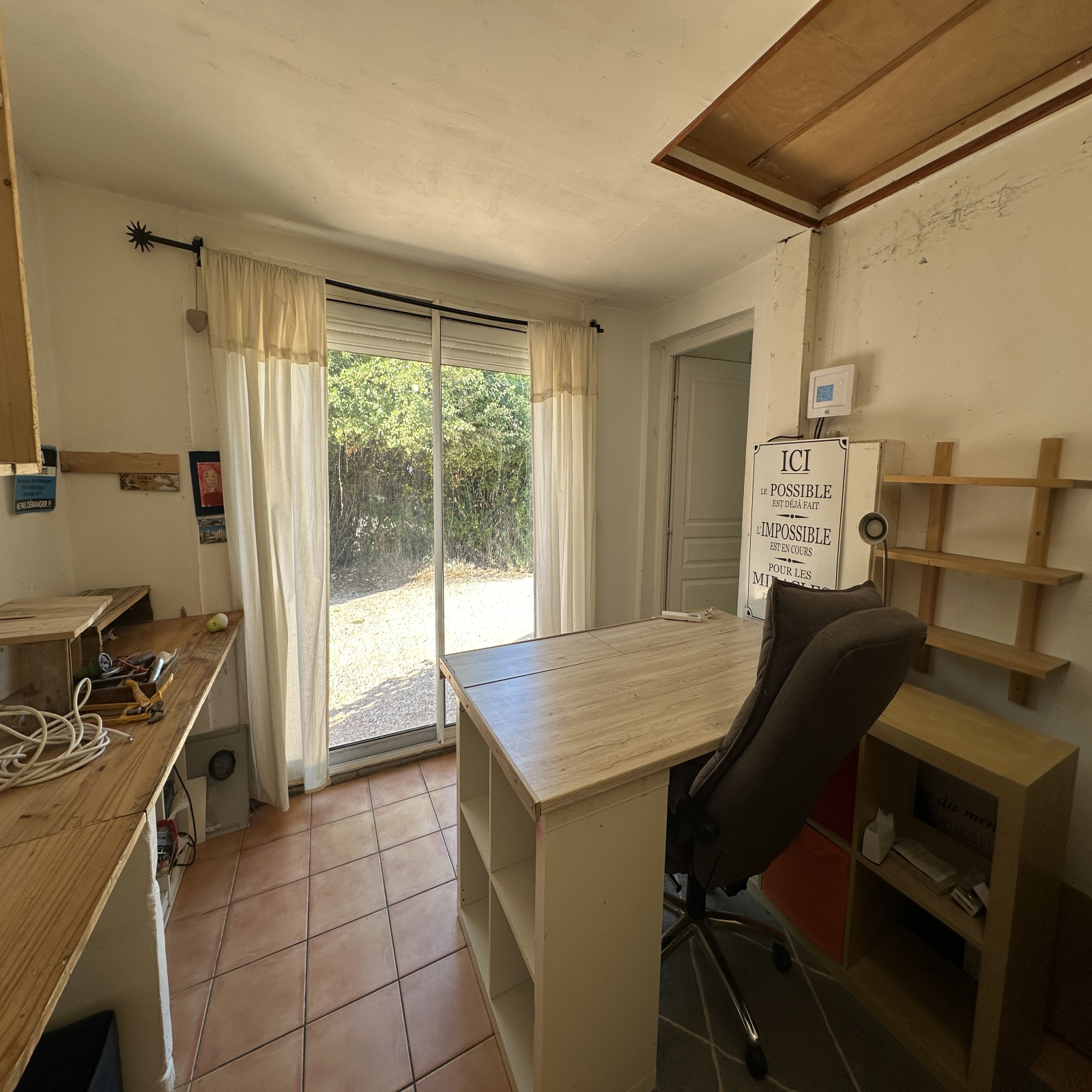 Attenant et communicant : Un garage aménagé en bureau et buanderie-cellier.