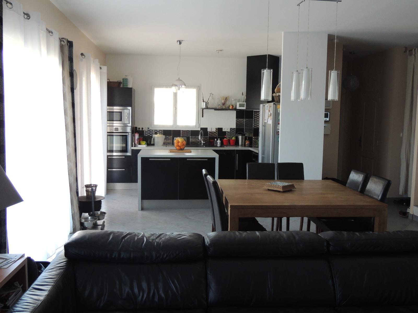 La maison comprend une entrée avec placards et toilettes indépendant, une pièce de vie de 42 m2, une cuisine ouverte équipée ouverte sur le séjour. Une suite parentale avec salle d'eau et son wc indépendant. A l'étage un espace bibliothèque ou bureau, 2 chambres exposée sud avec climatisation réversible, une chambre avec placards. Un salle de bain avec double vasques. Toilettes indépendant. Un garage attenant à la maison avec coin buanderie. Une piscine chaufée avec un volet roulant électrique. Terrasses avec pergola en fer forgé.