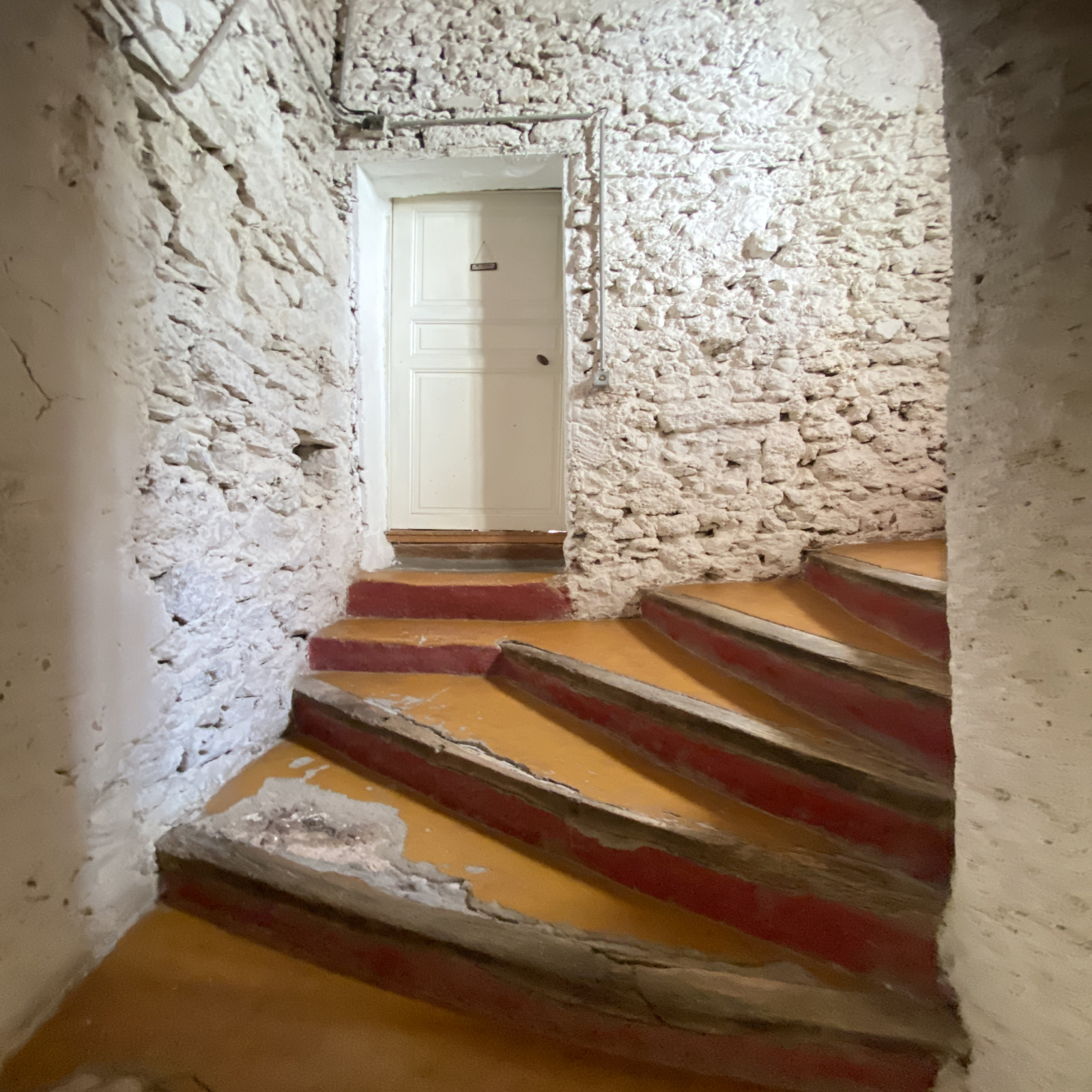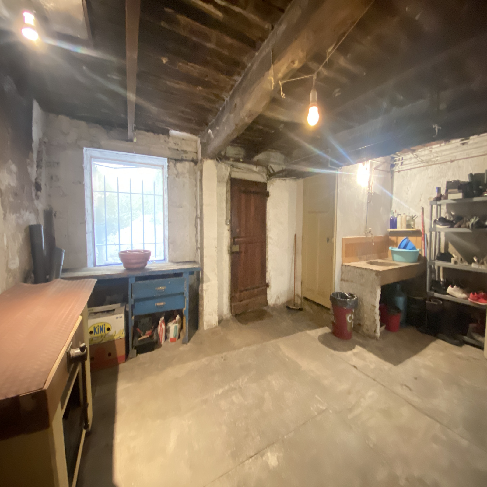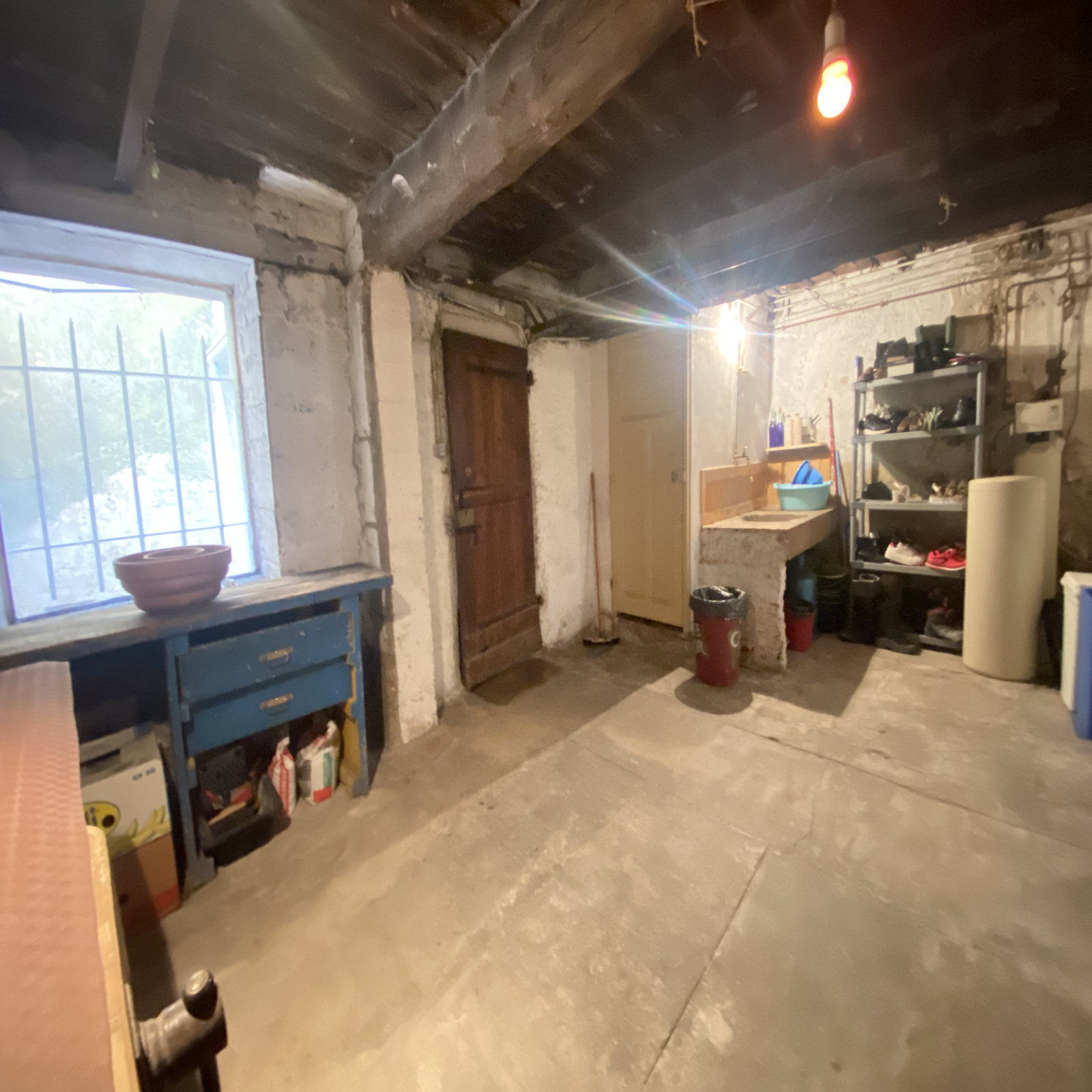 Au rez de chaussée : une entrée, une pièce de plus de 40 m2, un patio, une buanderie/atelier, une chauffaerue, une courette. Accès à une cave voutée en sous sol.
