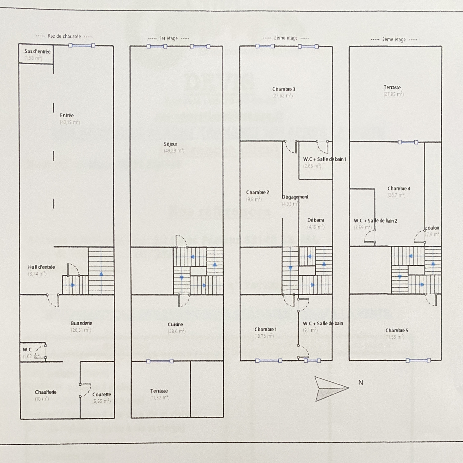 Au 2ème étage : une suite composée d'une chambre et une salle de bians avec wc, une chambre, et une grande chambre de plus de 27 m2.