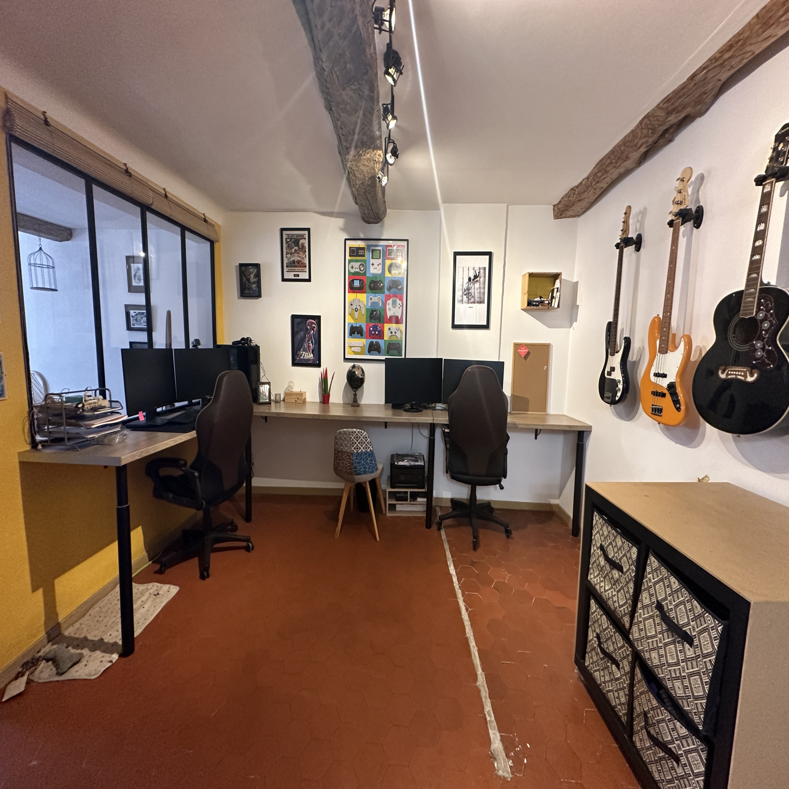 Au 1er étage : un espace de vie composé d'une cuisine et d'un séjour avec une salle à manger, un WC indépendant, une arriere cuisine.